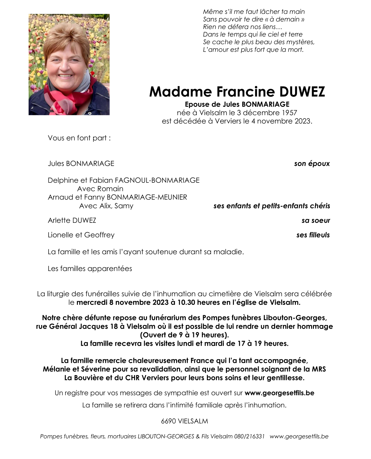 Died in Verviers (4800) on 04 November 2023 at the age of 65 years