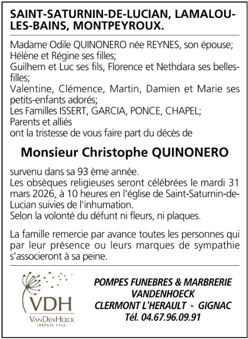 Décédé à Montpellier (34000, France) le vendredi 27 mars 2026 à l'âge de 92 ans