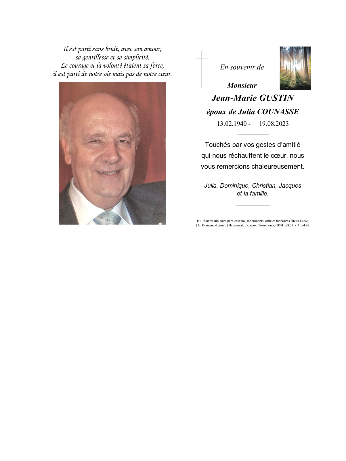 Overleden te Vielsalm (6690) op zaterdag 19 augustus 2023 op 83-jarige leeftijd