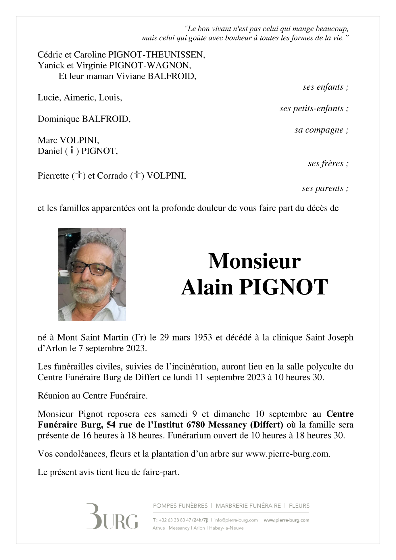 Décédé à Arlon (6700) le jeudi 7 septembre 2023 à l'âge de 70 ans