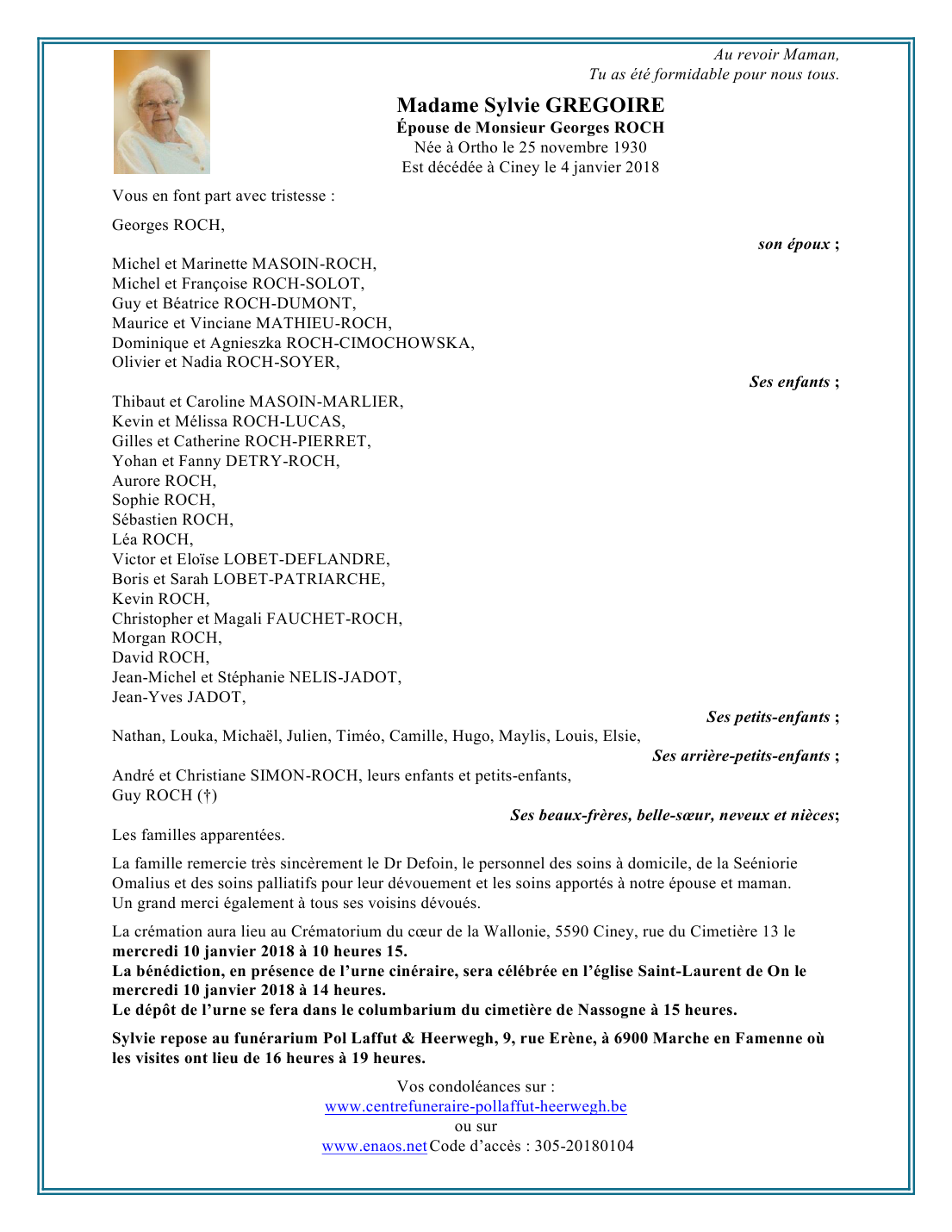 Died in Ciney (5590) on 04 January 2018 at the age of 87 years