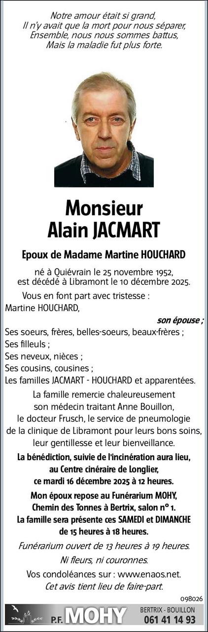 Décédé à Libramont (6800) le jeudi 11 décembre 2025 à l'âge de 73 ans