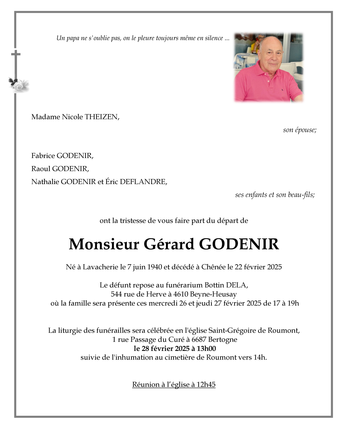 Décédé à Chênée (4032) le samedi 22 février 2025 à l'âge de 84 ans