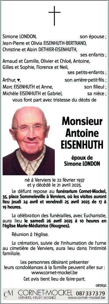 Overleden te Verviers (4800) op maandag 21 april 2025 op 88-jarige leeftijd