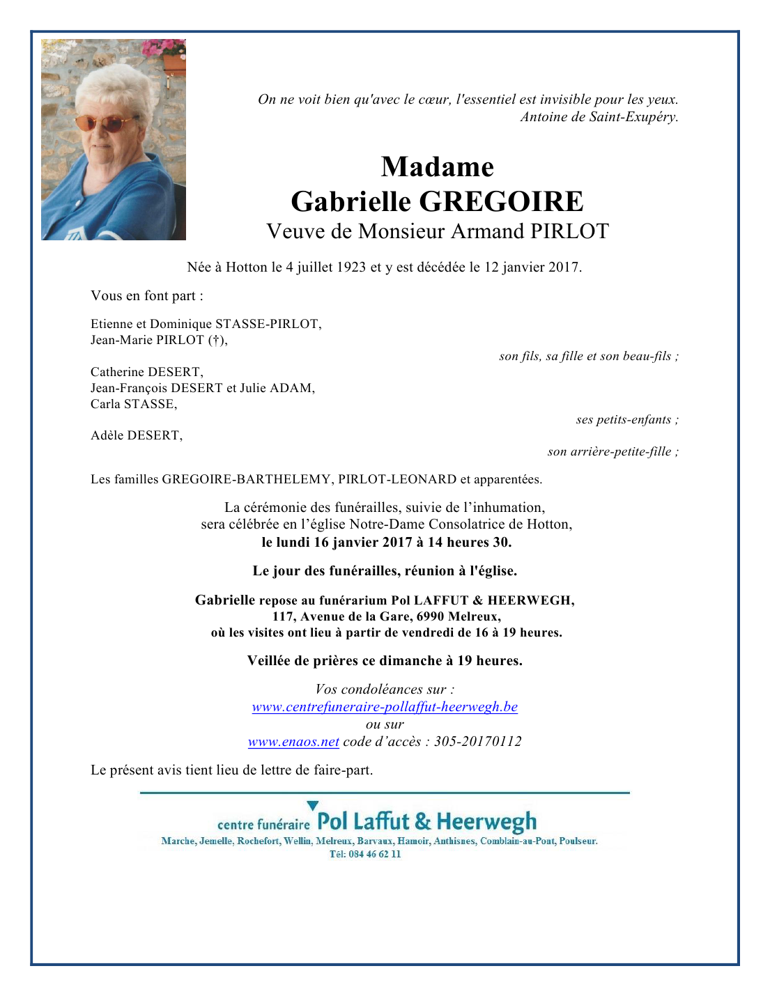 Overleden te Hotton (6990) op donderdag 12 januari 2017 op 93-jarige leeftijd