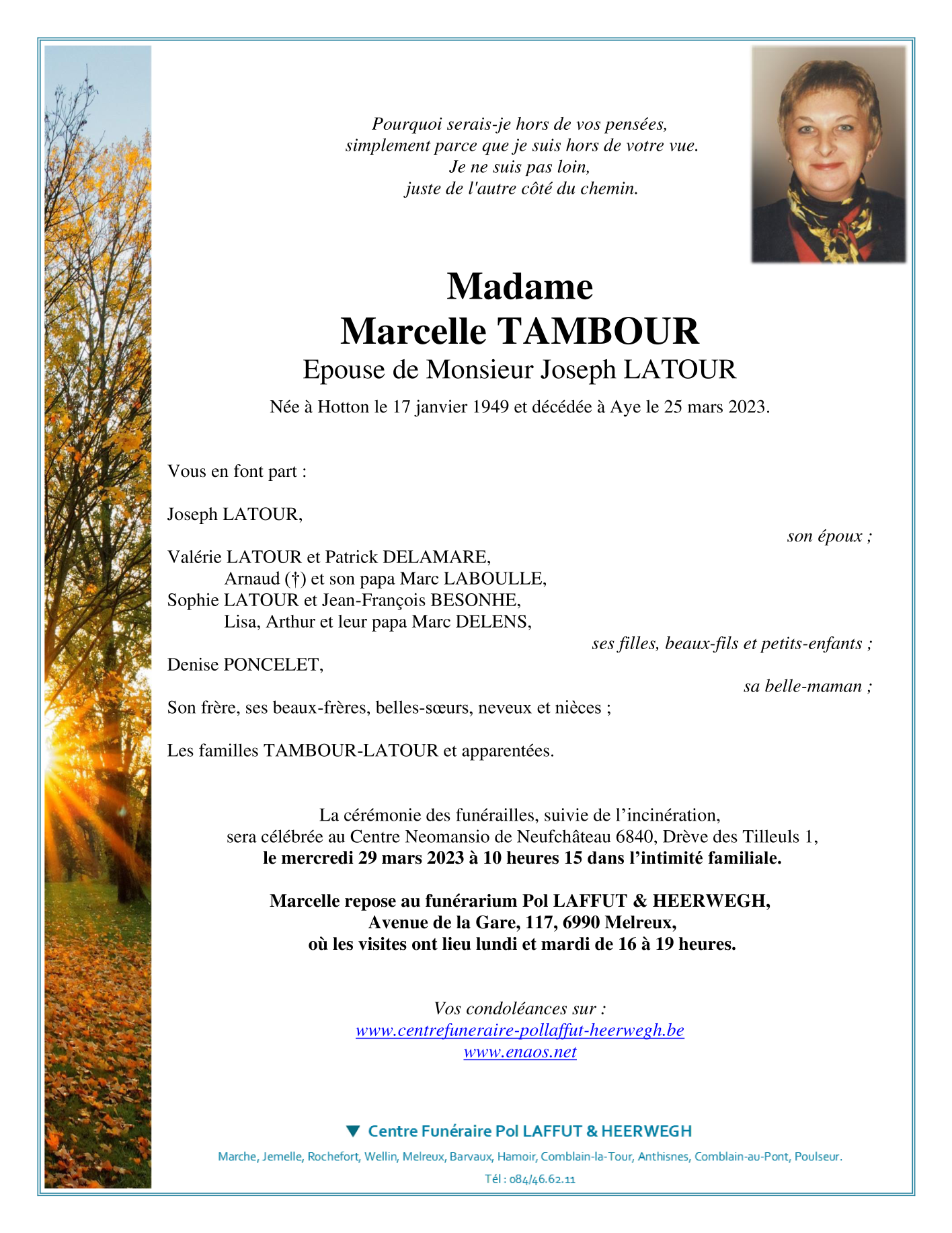 Overleden te Aye (6900) op zaterdag 25 maart 2023 op 74-jarige leeftijd
