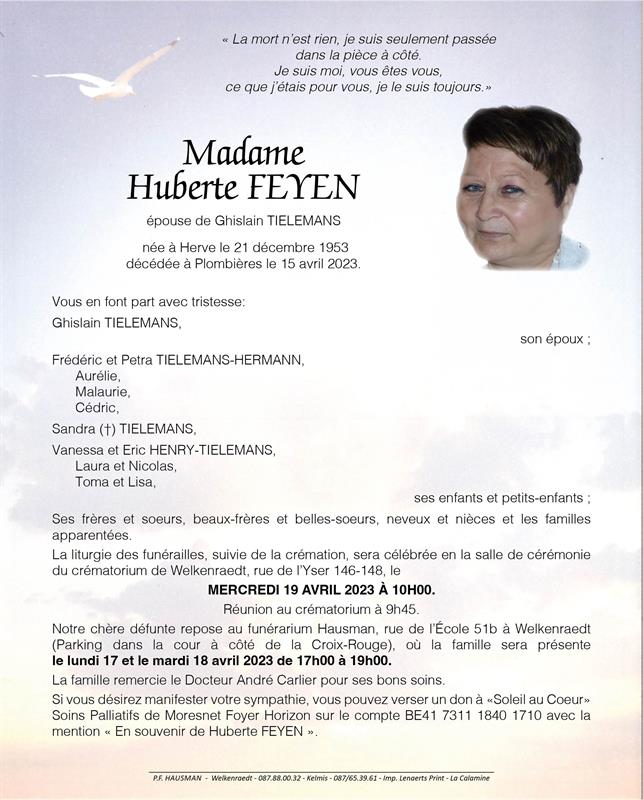 Fallecida en Plombières (4850) el sábado, 15 de abril de 2023 a la edad de 69 años