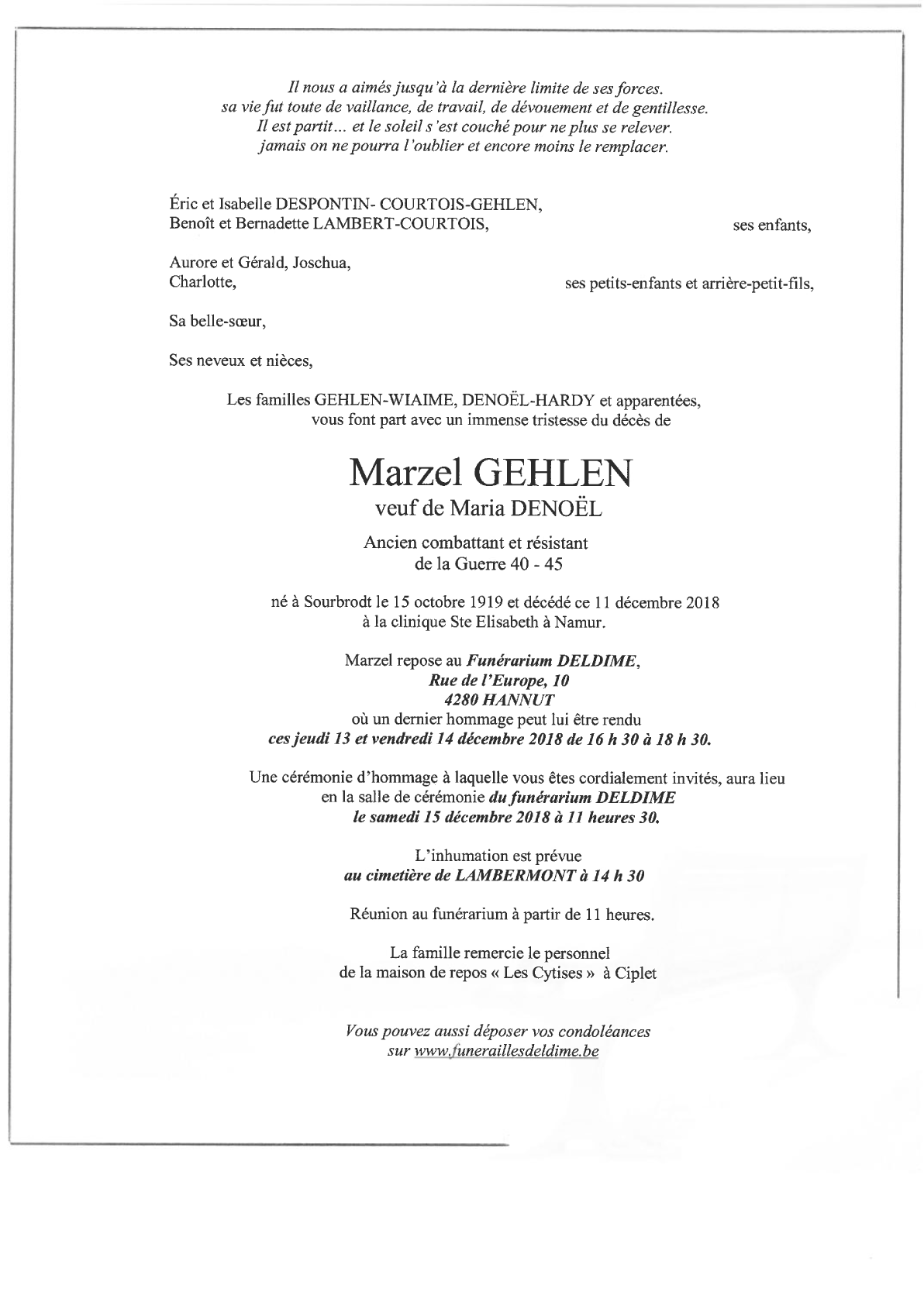 Fallecido en Namur (5000) el martes, 11 de diciembre de 2018 a la edad de 99 años