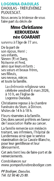 Madame Christiane KEROUEDAN née GOARANT