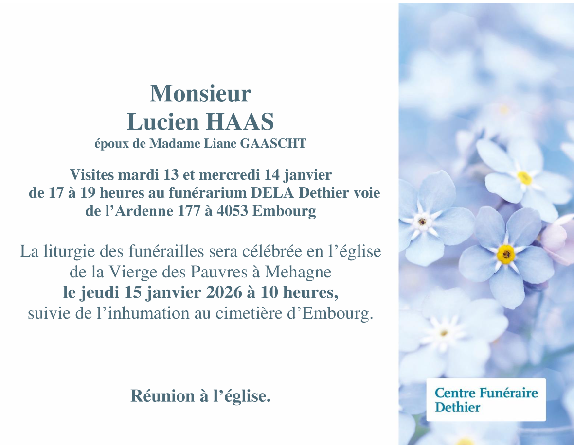 Died in Embourg (4053) on 11 January 2026 at the age of 92 years
