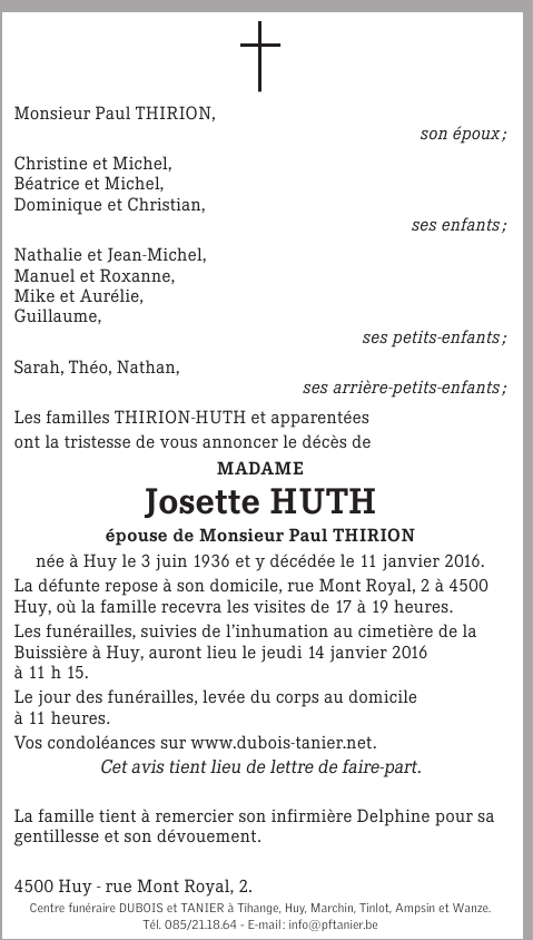 Died in Huy (4500) on 11 January 2016 at the age of 79 years