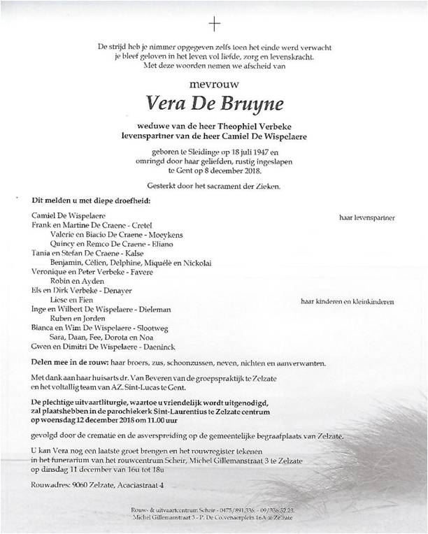 Died in Gent (9000) on 08 December 2018 at the age of 71 years