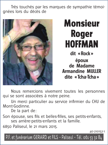 Décédé à Mont-Godinne (5530) le vendredi 6 mars 2015 à l'âge de 75 ans