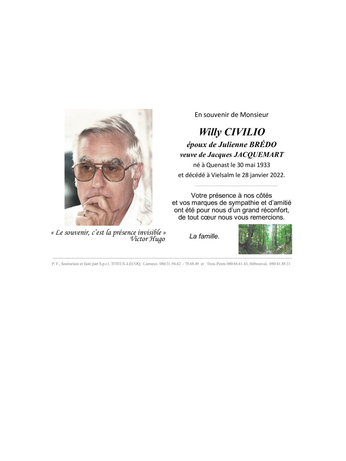 Died in Vielsalm (6690) on 28 January 2022 at the age of 88 years