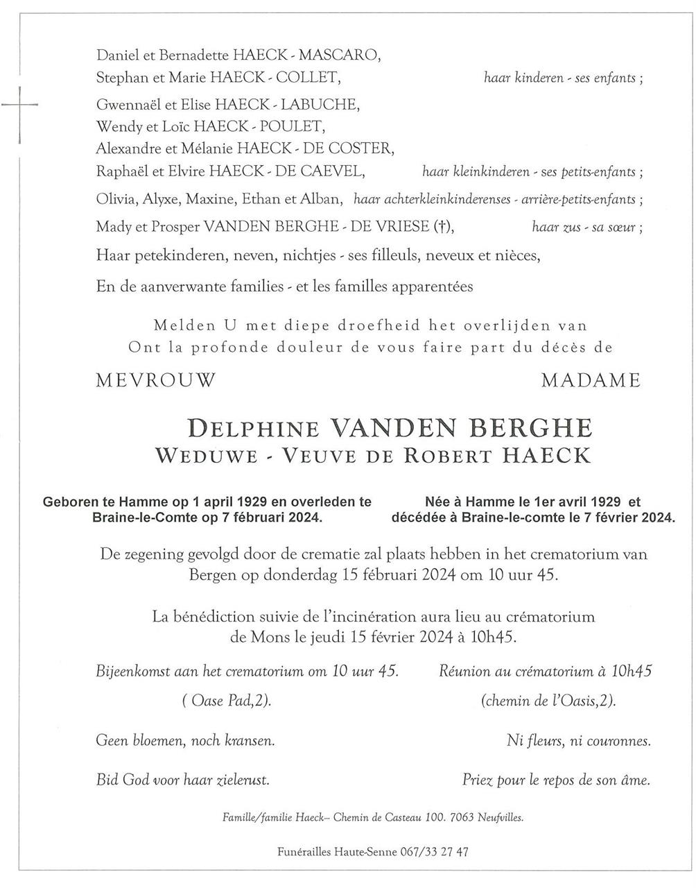 Décédée à Braine-le-Comte (7090) le mercredi 7 février 2024 à l'âge de 94 ans