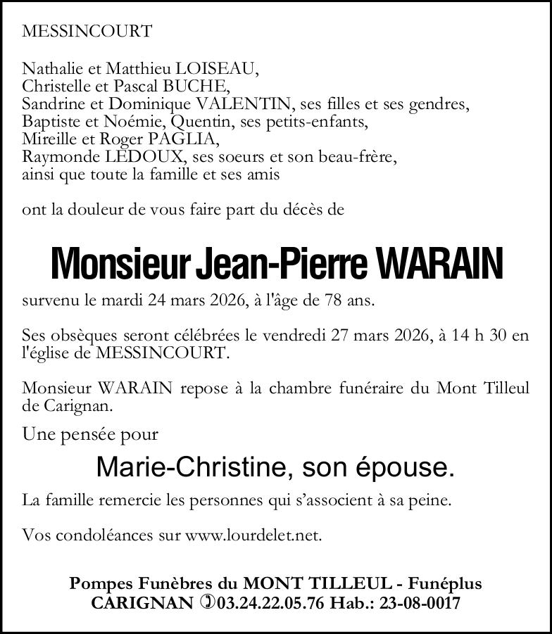 Né à Messincourt (08110, France) le mardi 9 mars 1948