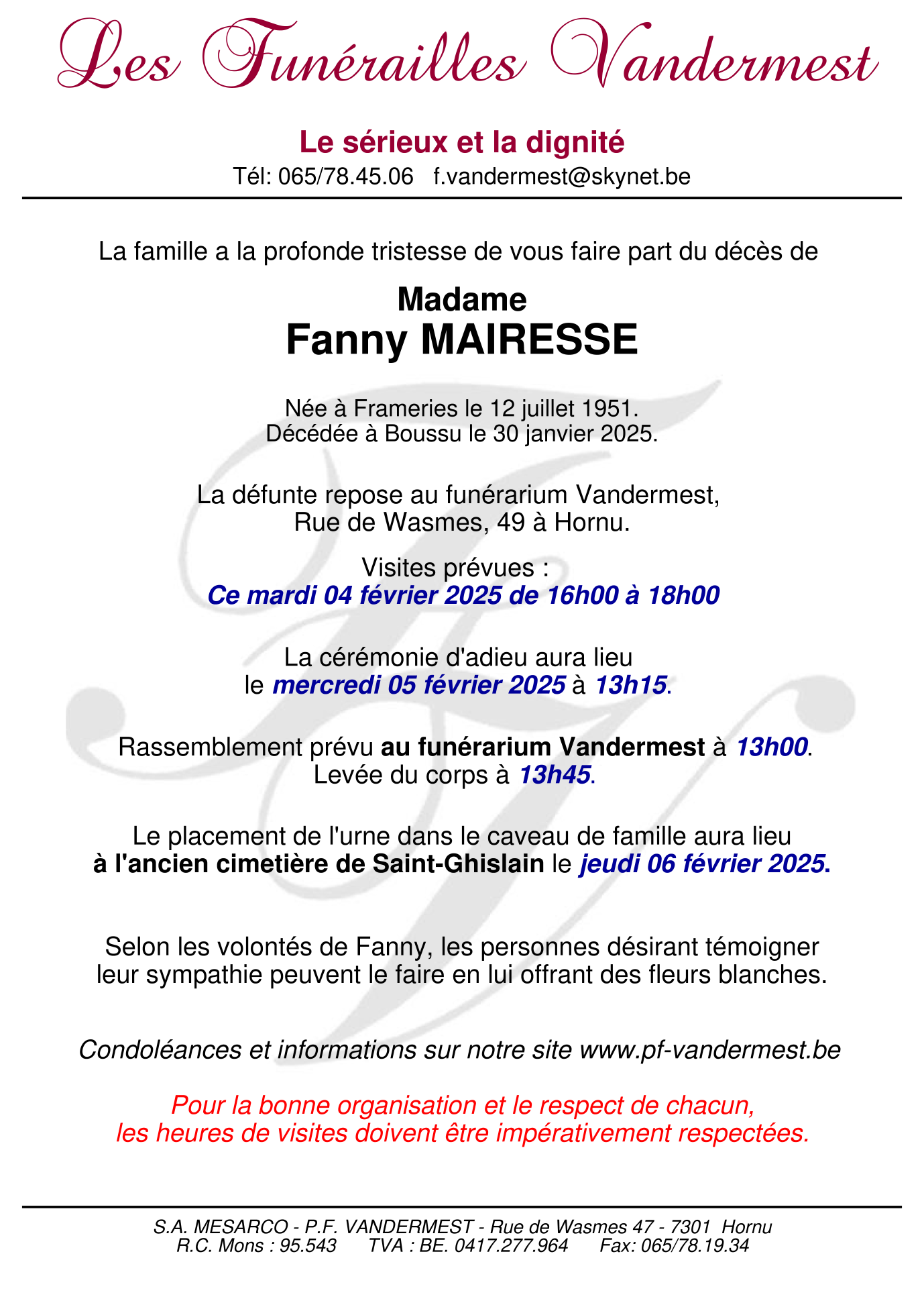 Madame Fanny MAIRESSE