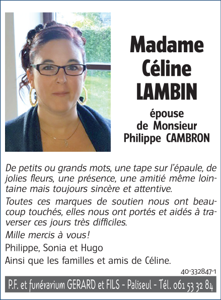 Décédée à Paliseul (6850) le jeudi 30 janvier 2020 à l'âge de 36 ans