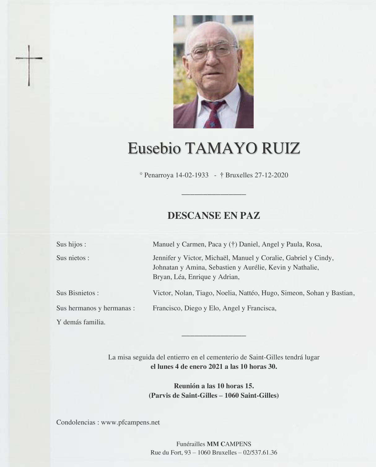 Fallecido en Bruxelles (1000) el domingo, 27 de diciembre de 2020 a la edad de 87 años