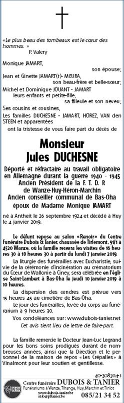 Overleden te Huy (4500) op vrijdag 4 januari 2019 op 94-jarige leeftijd