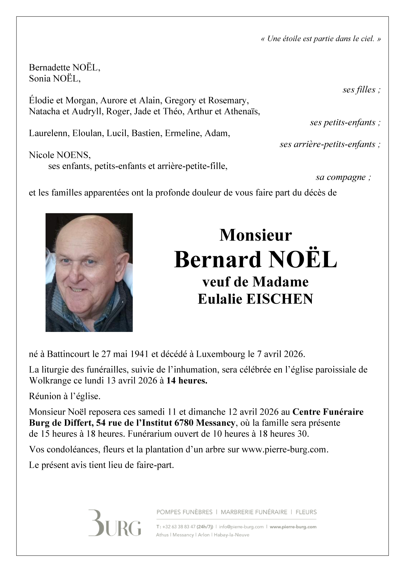 Overleden te Luxembourg/Zithe  (2763, Luxembourg) op dinsdag 7 april 2026 op 84-jarige leeftijd