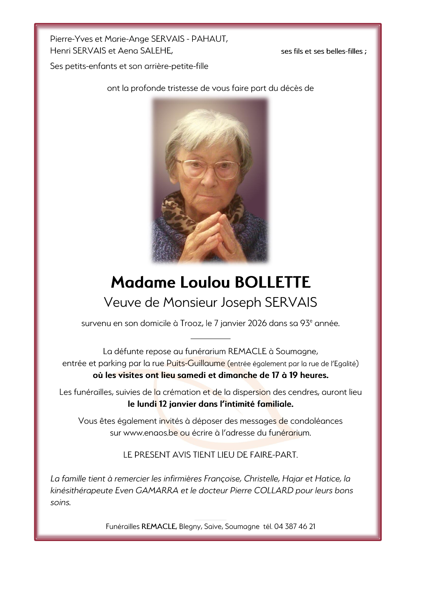 Overleden te Trooz (4870) op woensdag 7 januari 2026 op 92-jarige leeftijd