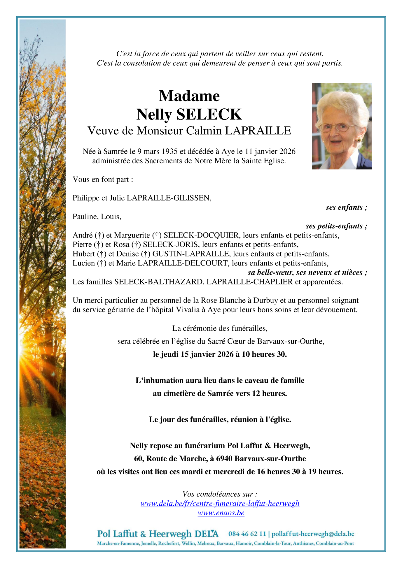 Overleden te Aye (6900) op zondag 11 januari 2026 op 90-jarige leeftijd