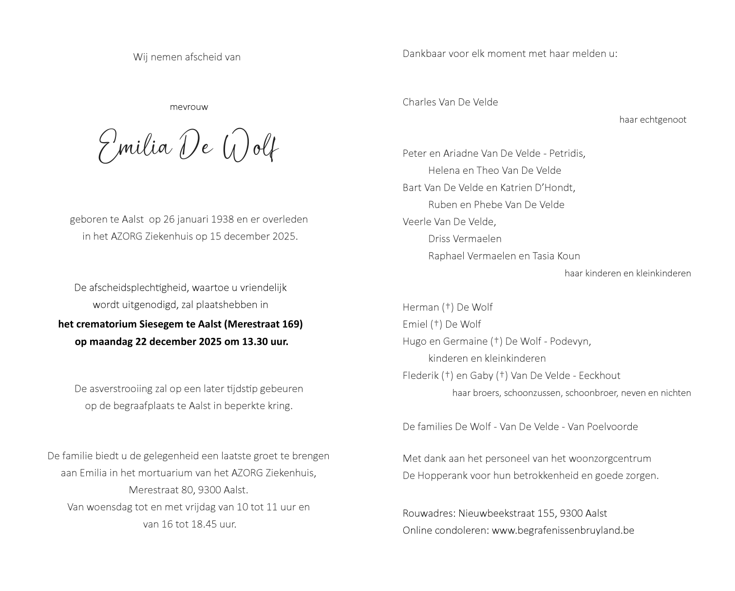 Died in Aalst (9300) on 15 December 2025 at the age of 87 years