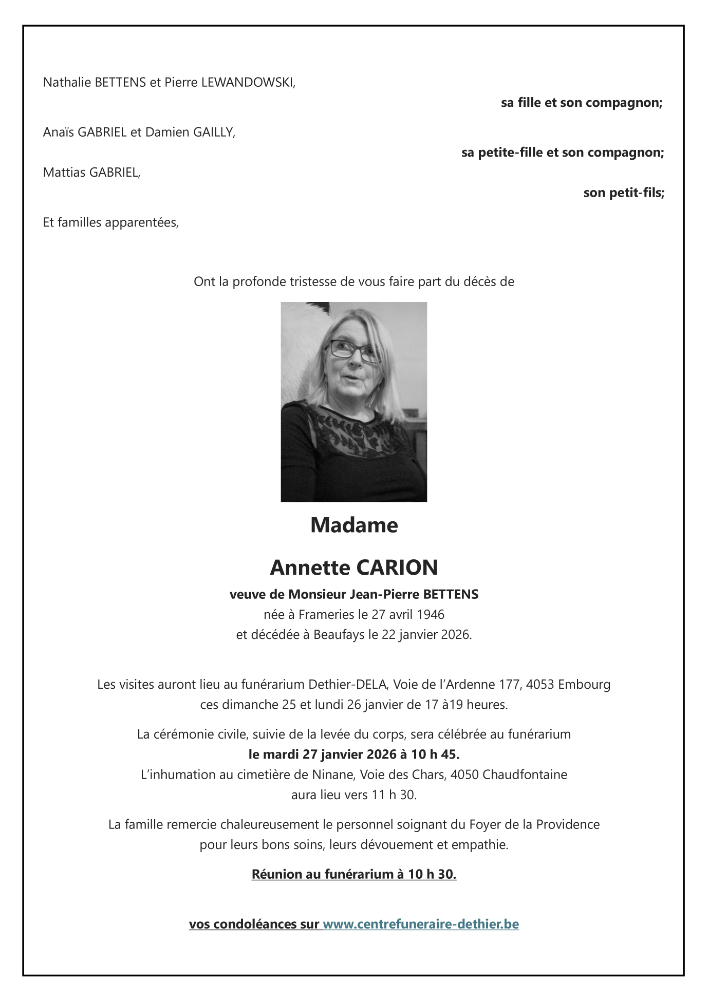 Weduwe van Monsieur Jean-Pierre BETTENS