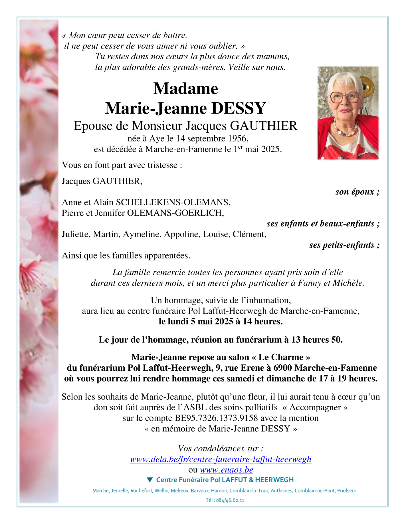 Overleden te Marche-en-Famenne (6900) op donderdag 1 mei 2025 op 68-jarige leeftijd