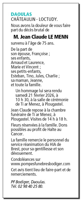 Décédé à Brest (29200, France) le mardi 17 février 2026 à l'âge de 75 ans