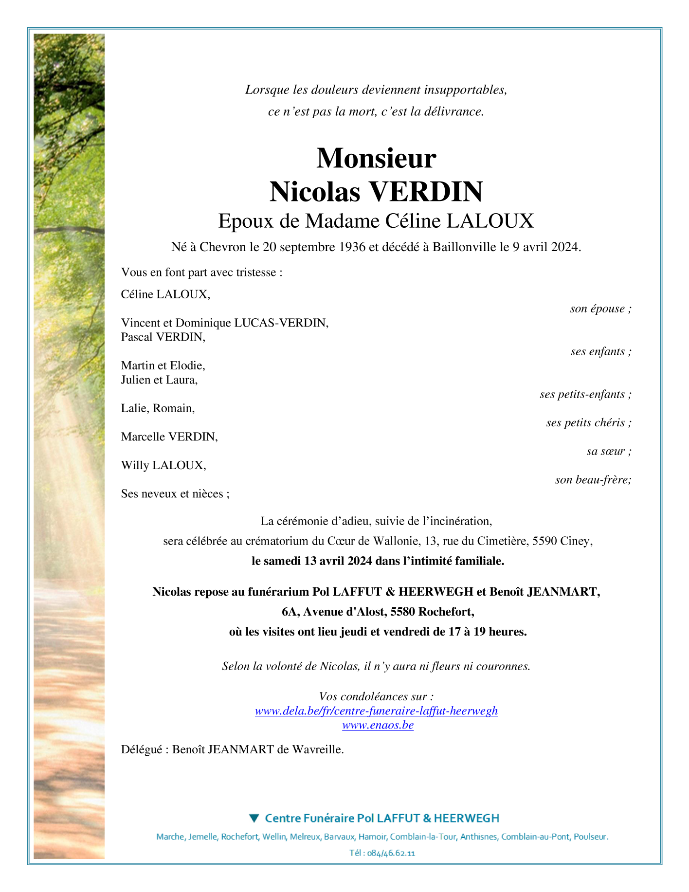 Fallecido en Baillonville (5377) el martes, 9 de abril de 2024 a la edad de 87 años