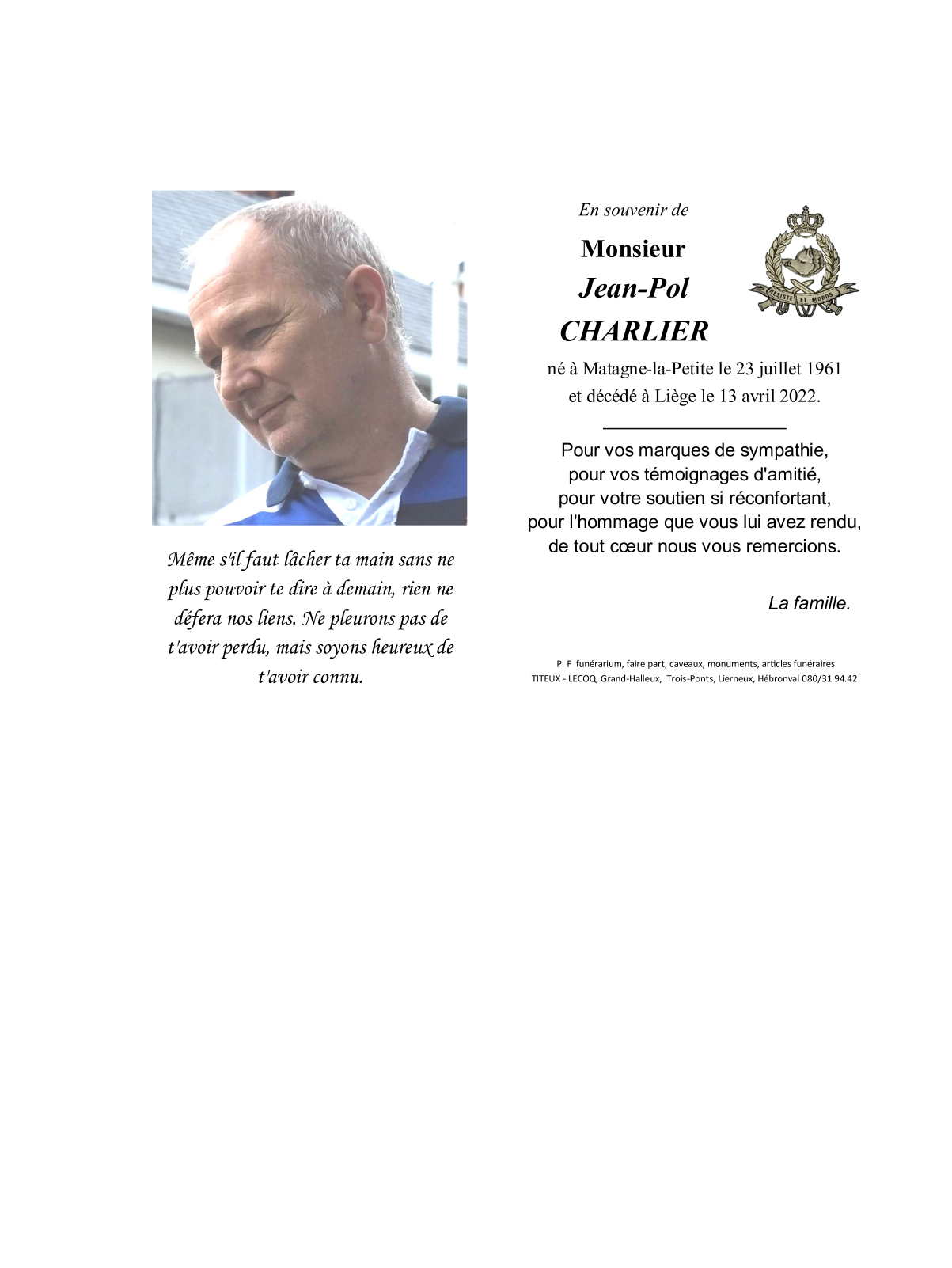 Died in Liège (4000) on 13 April 2022 at the age of 60 years