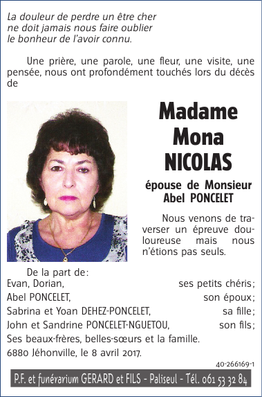 Esposa de Monsieur Abel PONCELET