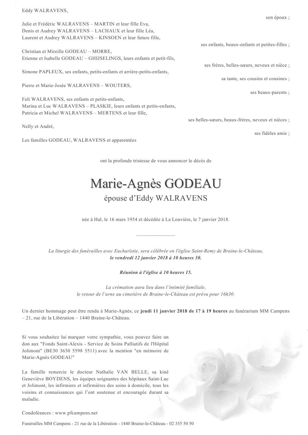 Spouse of Monsieur Eddy WALRAVENS