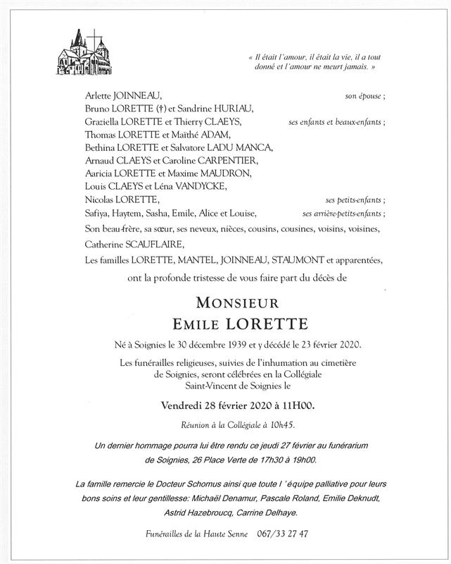 Fallecido en Soignies (7060) el domingo, 23 de febrero de 2020 a la edad de 80 años