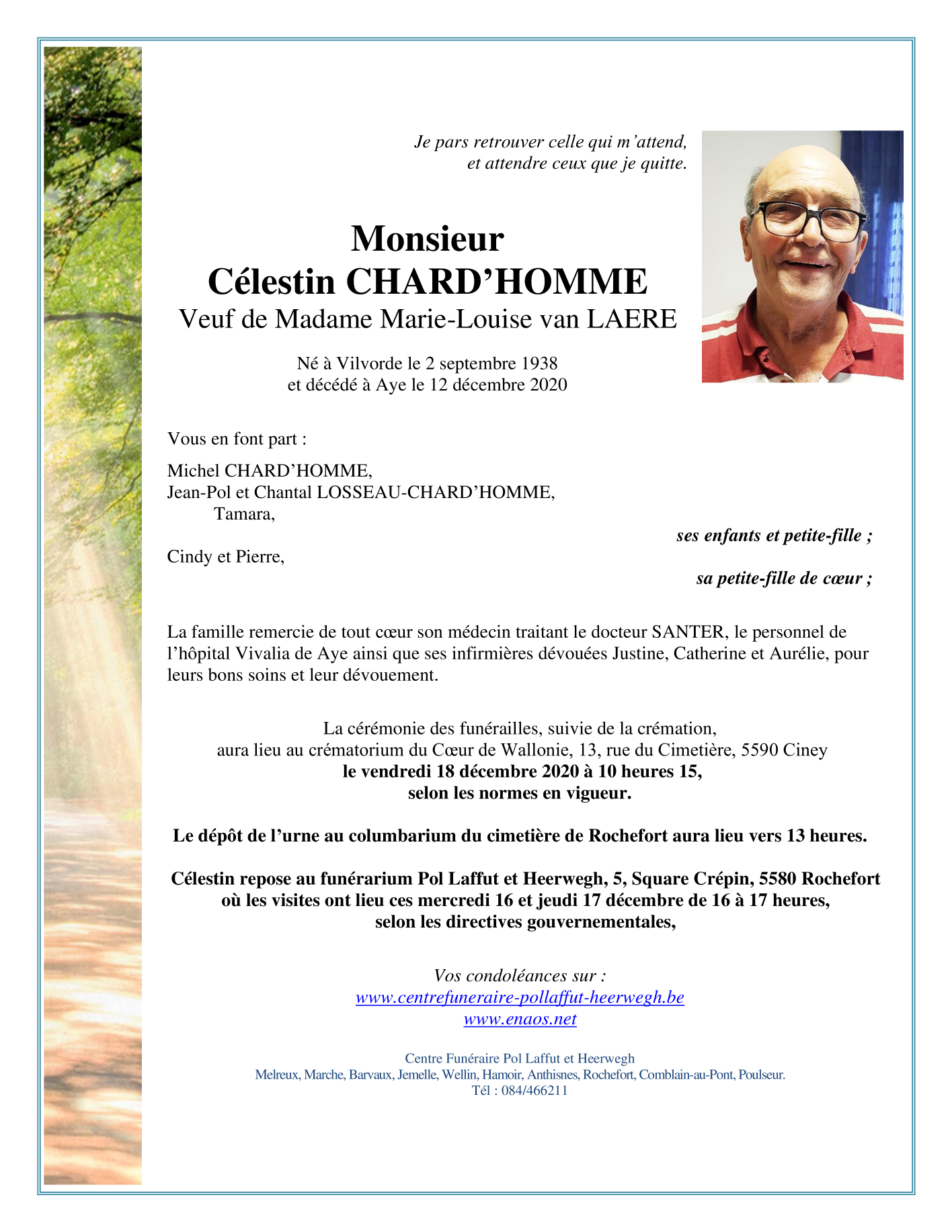 Overleden te Aye (6900) op zaterdag 12 december 2020 op 82-jarige leeftijd