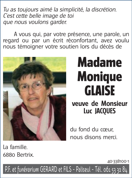 Fallecida en Bouillon (6830) el domingo, 26 de abril de 2020 a la edad de 73 años