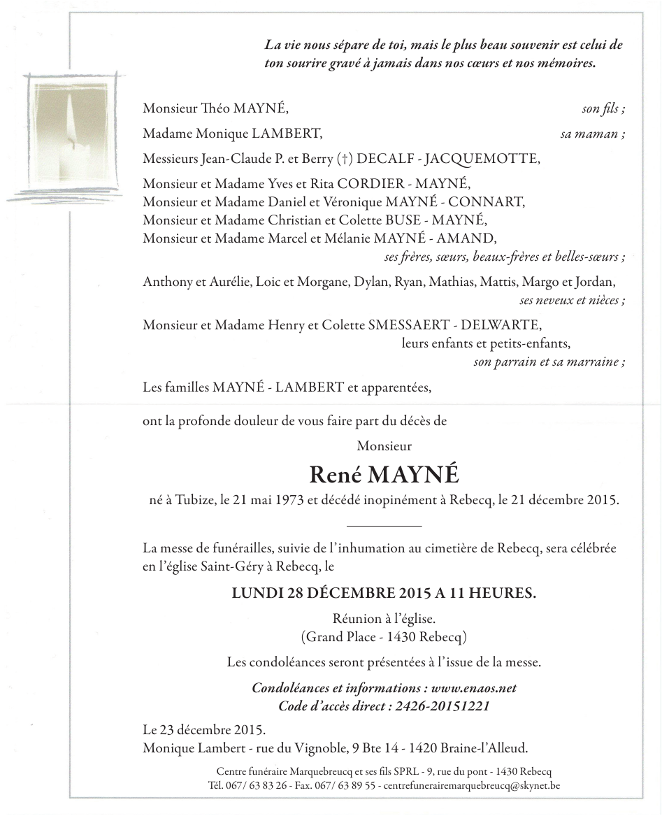 Died in Rebecq (1430) on 21 December 2015 at the age of 42 years