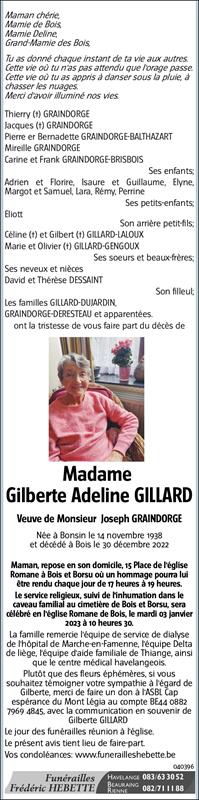 Fallecida en Bois-et-Borsu (4560) el viernes, 30 de diciembre de 2022 a la edad de 84 años