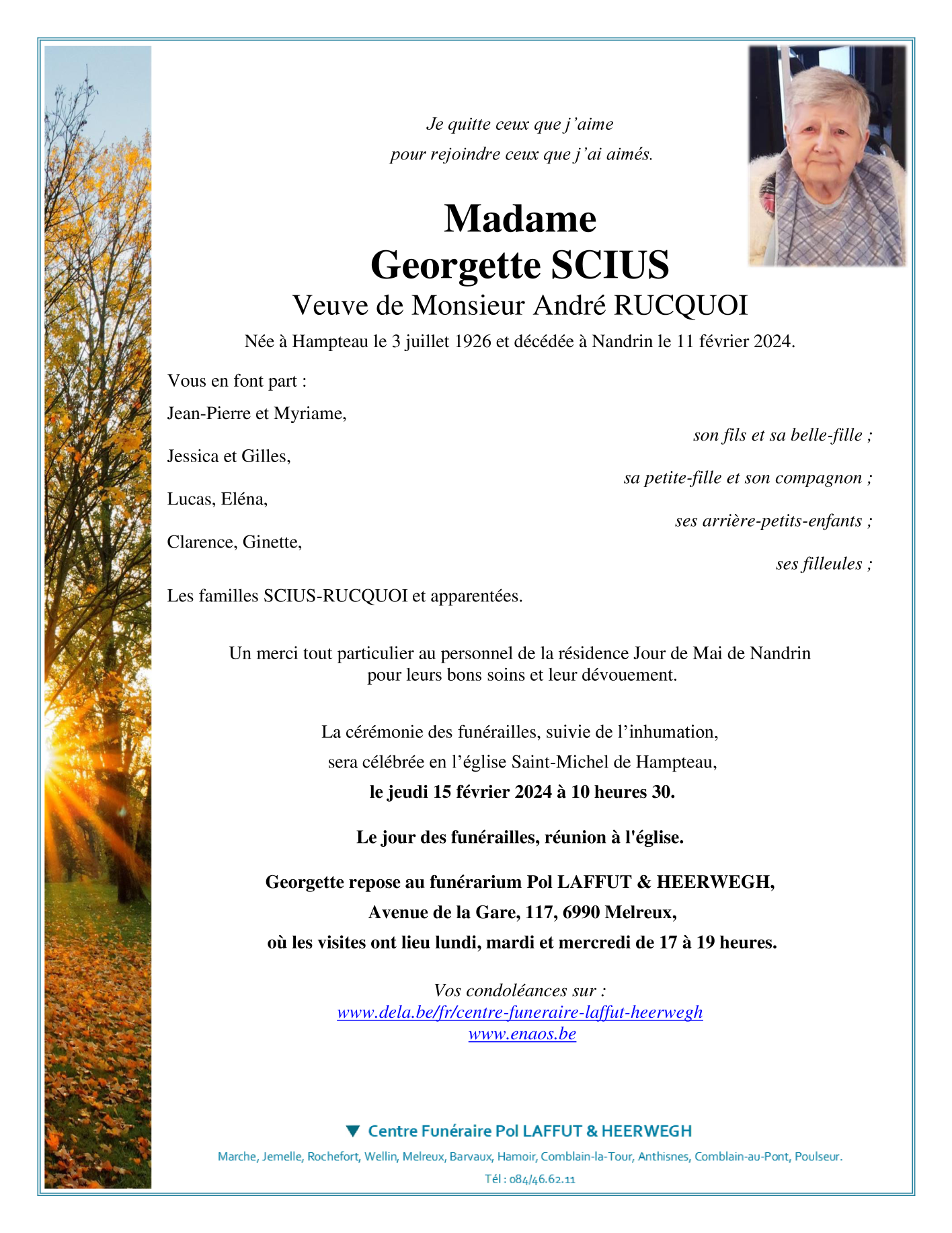 Died in Nandrin (4550) on 11 February 2024 at the age of 97 years