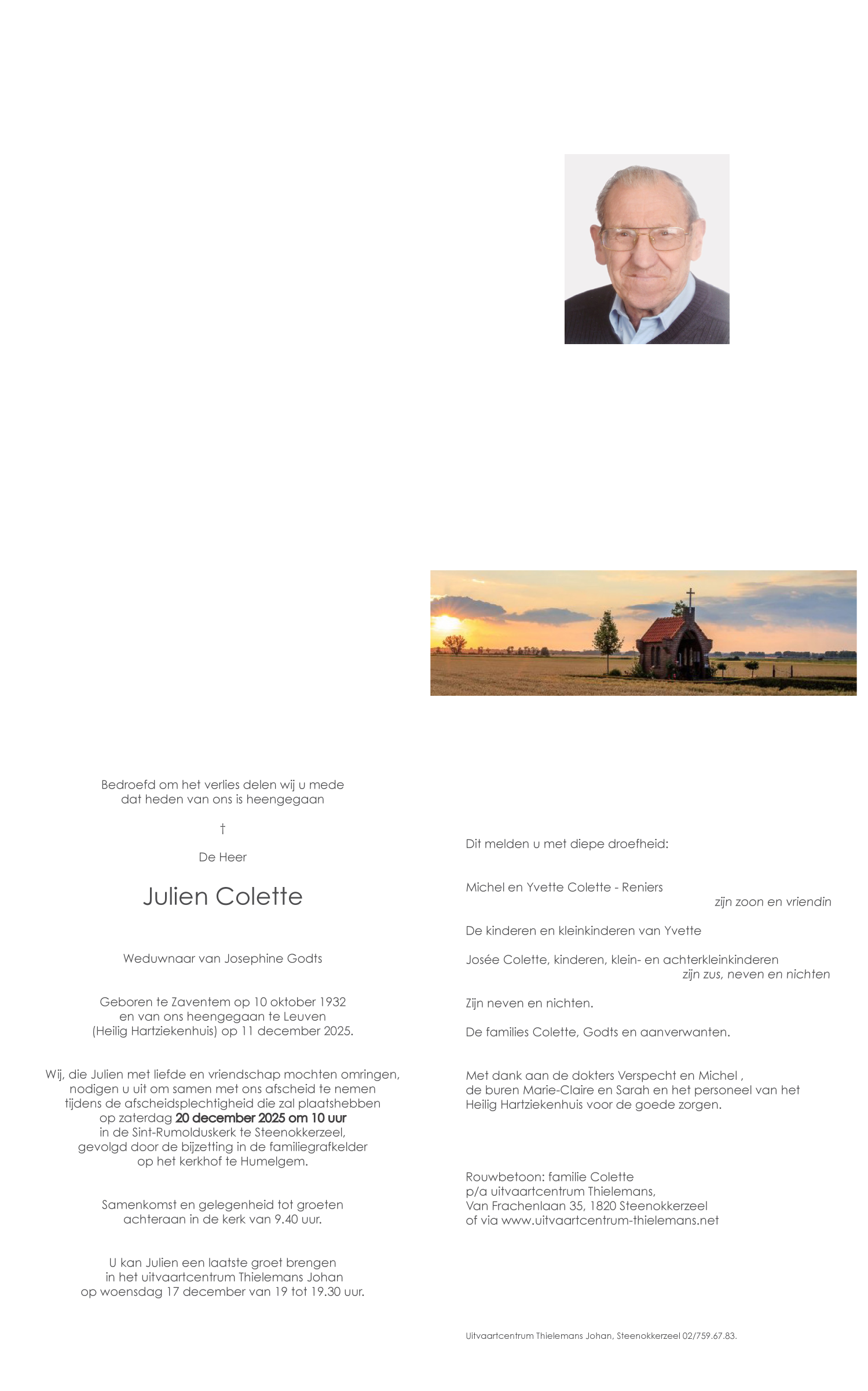 Died in Leuven (3000) on 11 December 2025 at the age of 93 years
