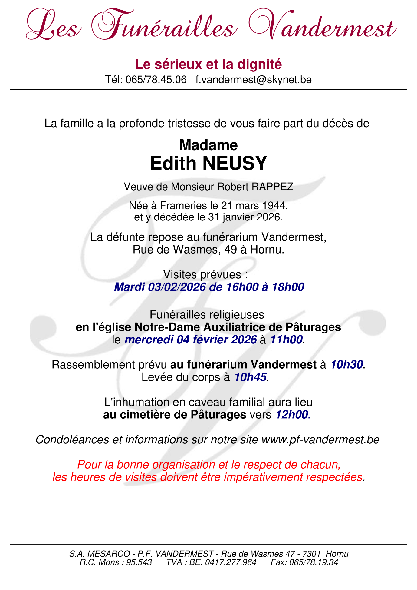 Veuve de Monsieur Robert RAPPEZ
