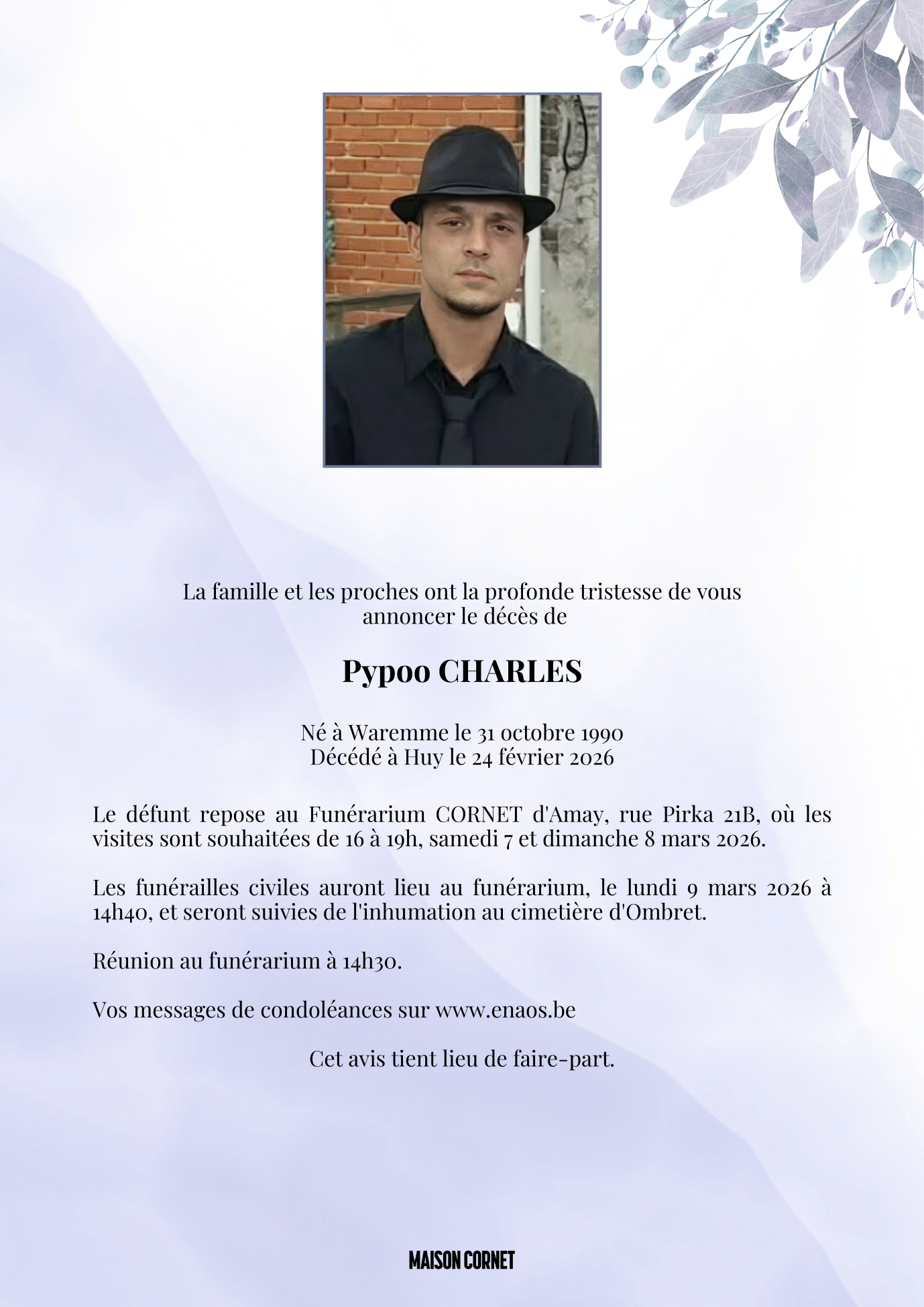 Décédé à Huy (4500) le mardi 24 février 2026 à l'âge de 35 ans