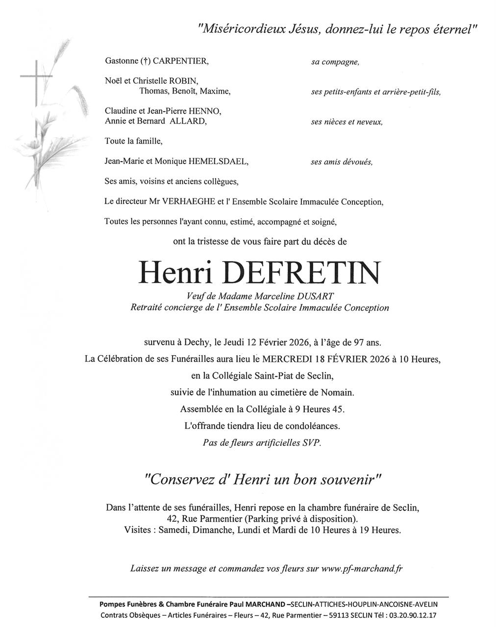 Overleden te Dechy (59187, Frankrijk) op donderdag 12 februari 2026 op 97-jarige leeftijd