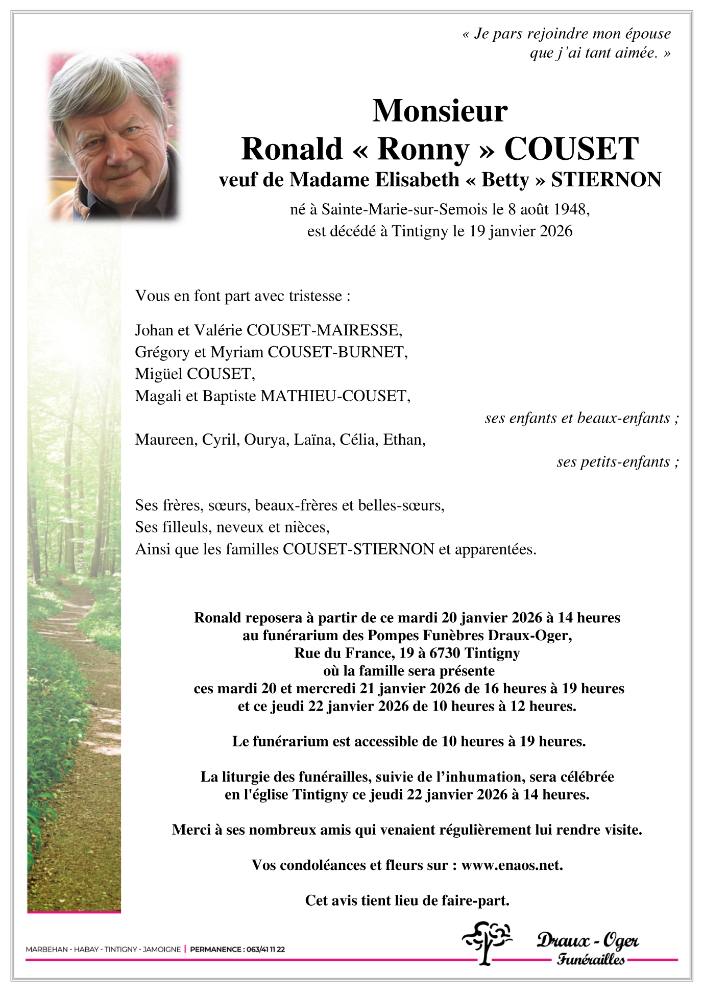 Veuf de Madame Elisabeth "Betty" STIERNON