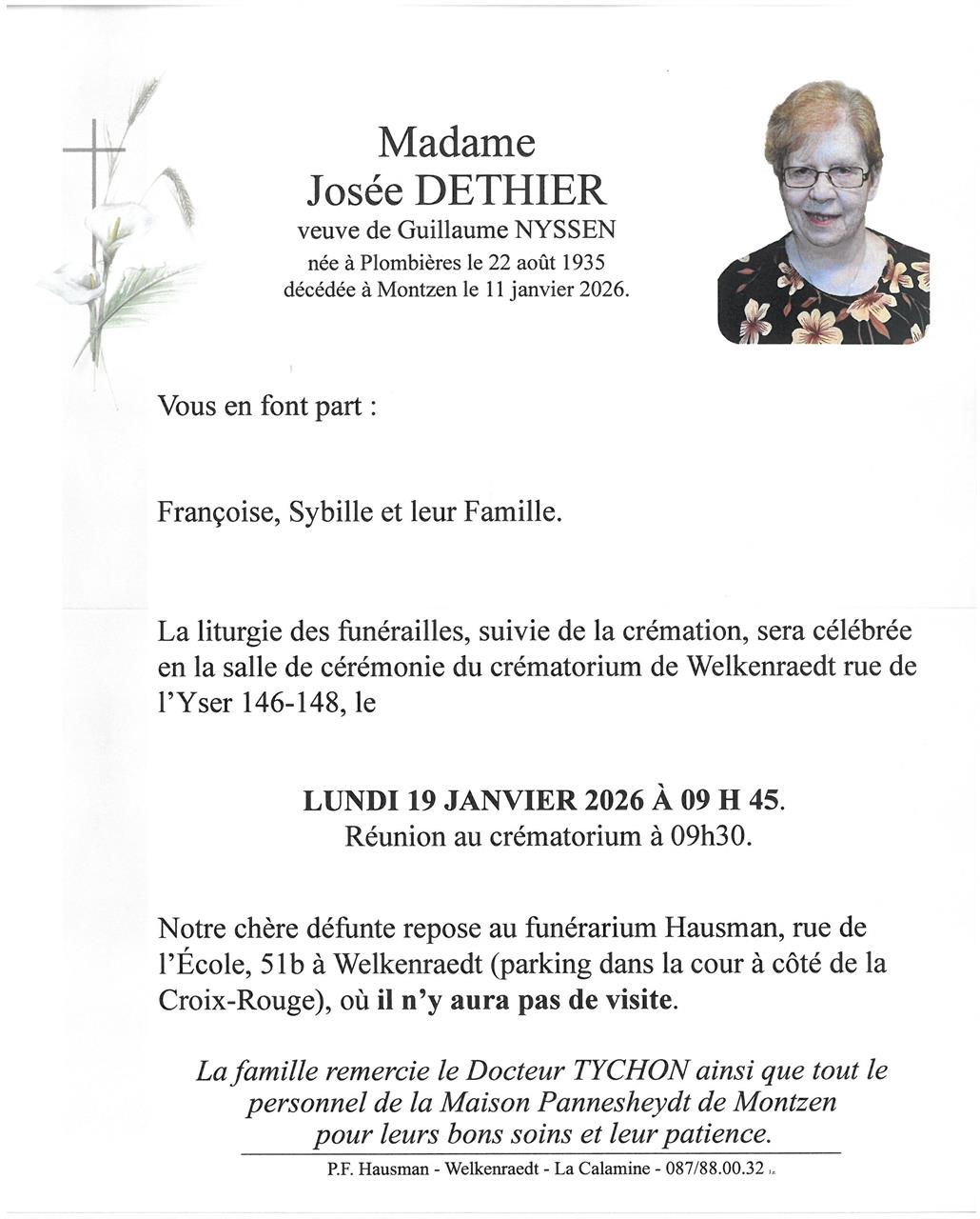 Madame Joséphine DETHIER