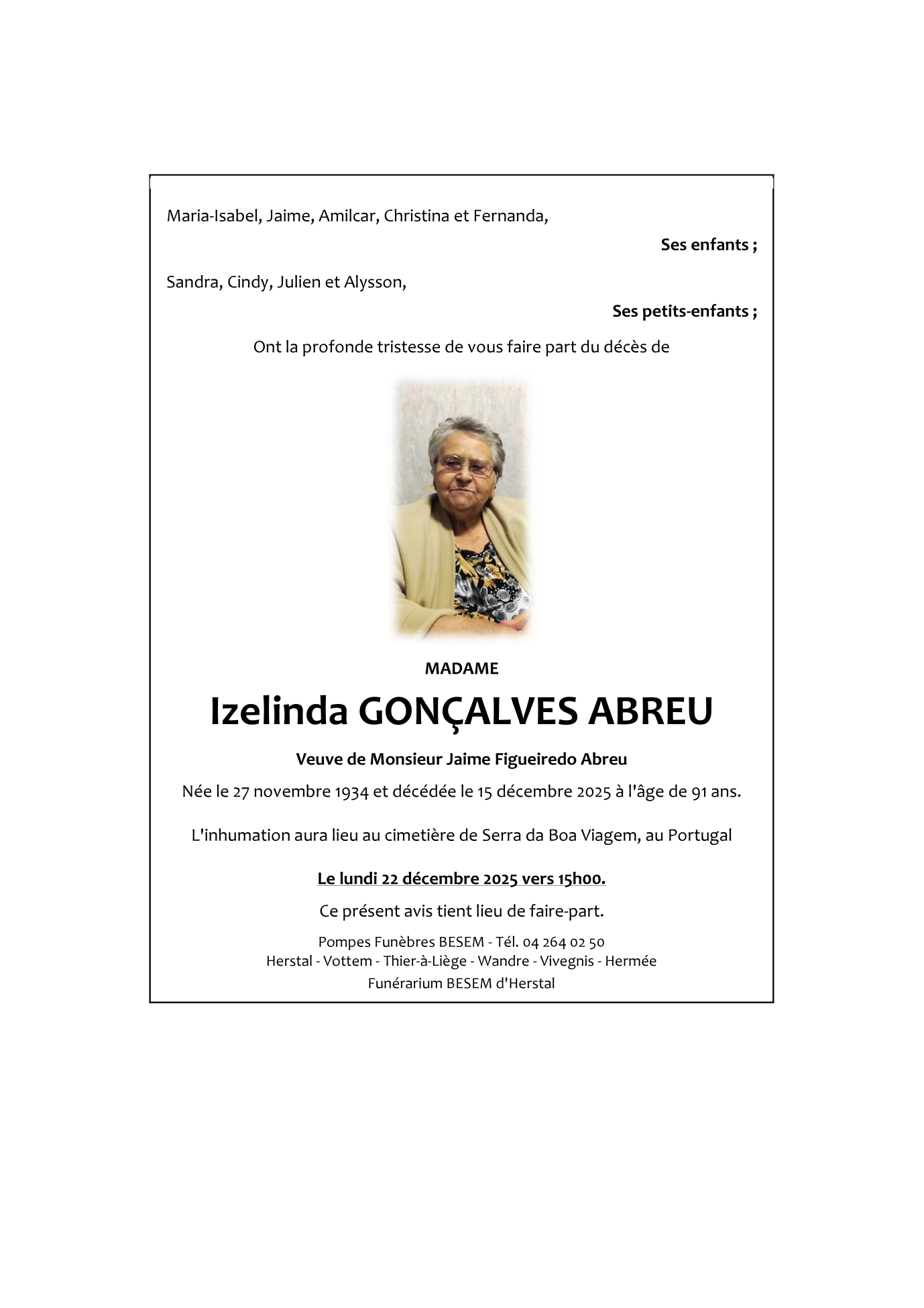 Madame Izelinda GONÇALVES ABREU