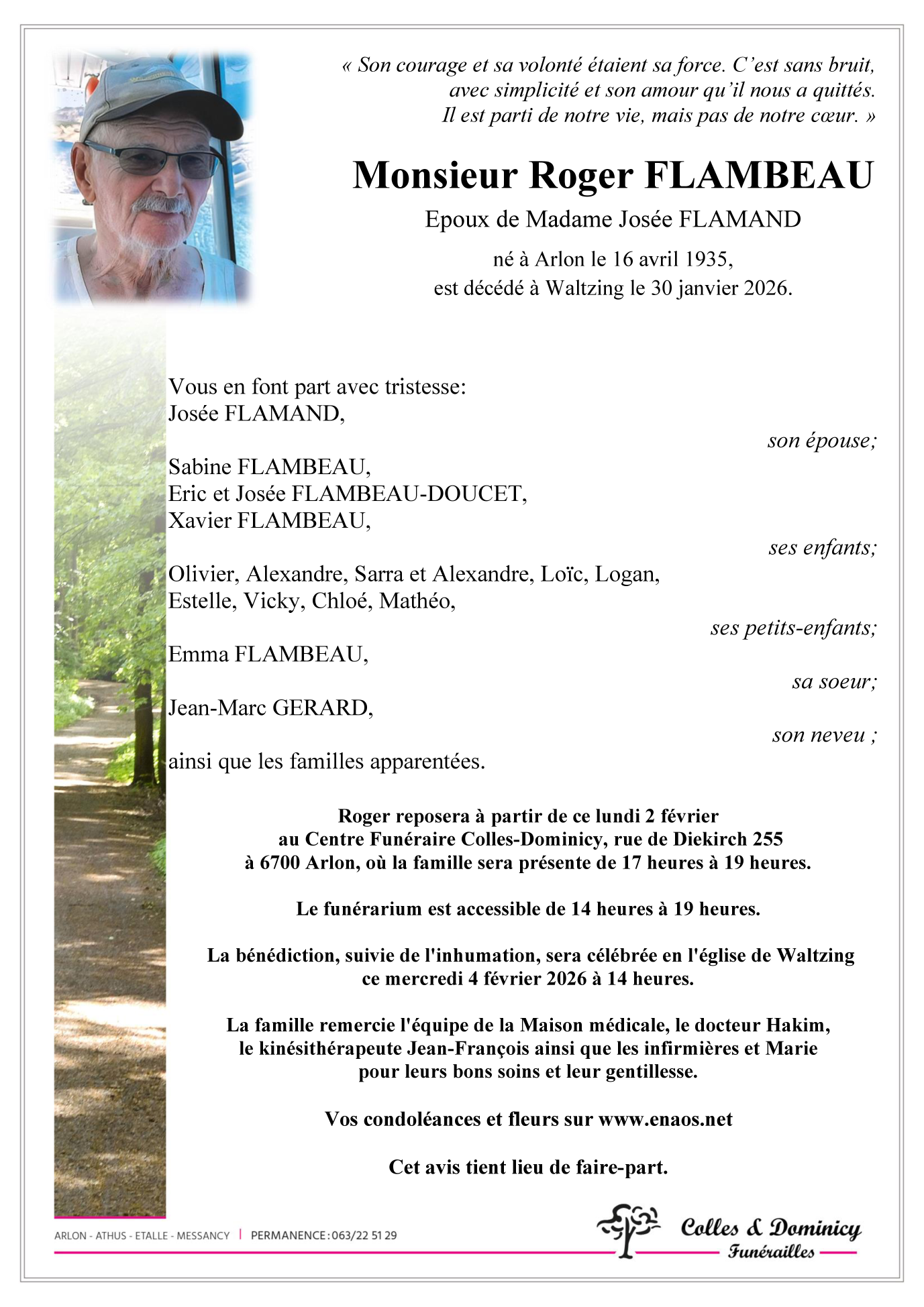 Décédé à Waltzing (6700) le vendredi 30 janvier 2026 à l'âge de 90 ans