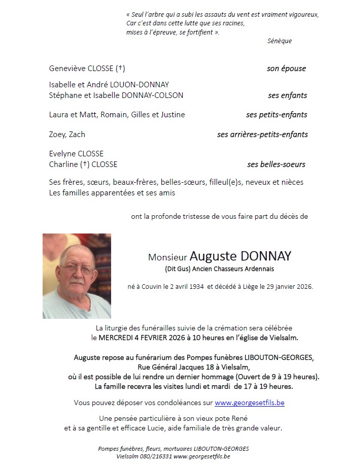 Décédé à Liège (4000) le jeudi 29 janvier 2026 à l'âge de 91 ans